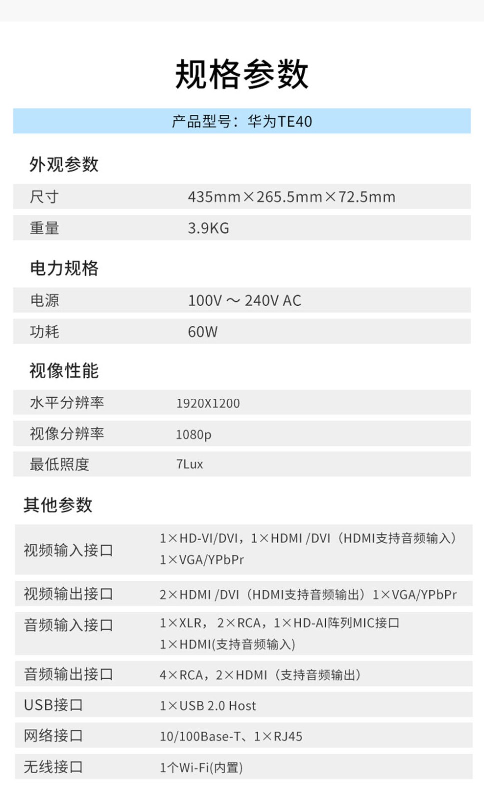 华为(HUAWEI) 高清视频会议终端设备 华为TE40-1080P30 自营